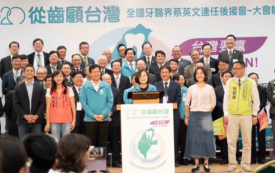 蔡英文致詞說,民進黨執政3年有成,口腔衛生議題已有重大進展,包括2000億預算投入口腔保健、65歲則提供裝假牙補助等。