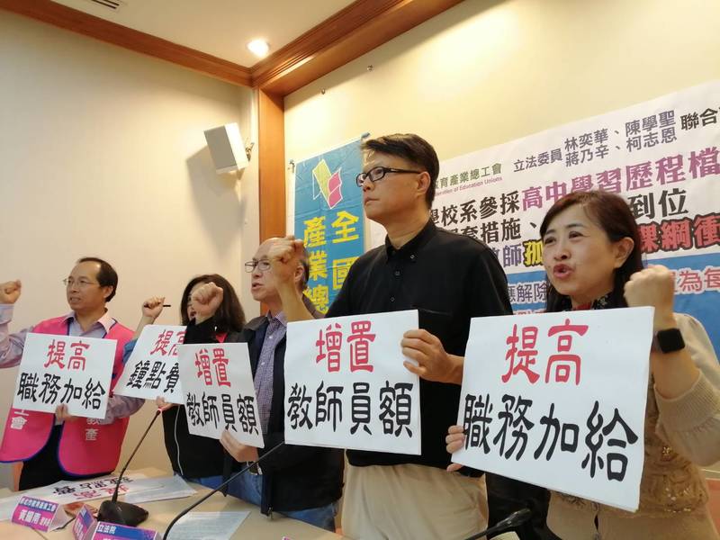 【台灣醒報記者林祐任台北報導】108課綱上路後,高中老師必須自備教材開設多元選修等課程,協助學生自主學習,往往還得兼任行政職,第一線的老師恐怕將疲於奔命!全國教育產業總工會6日召開記者會,要求教育部將教師員額編制提升至每班3人、提高鐘點費等措施,在場的教育部官員均不敢承諾。