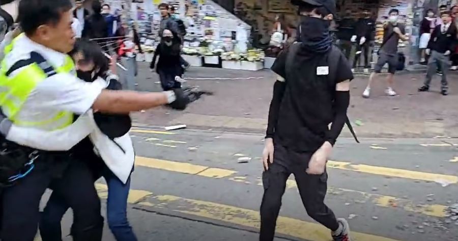 11月11日,香港警察發生了對群眾開槍的憾事。當時是警察勒住一名年輕男子後,因為陸續又湧上來多名群眾,警察下意識射擊,子彈打中了黑衣男子的腎臟肝臟,目前傷者還在醫院開刀搶救當中。