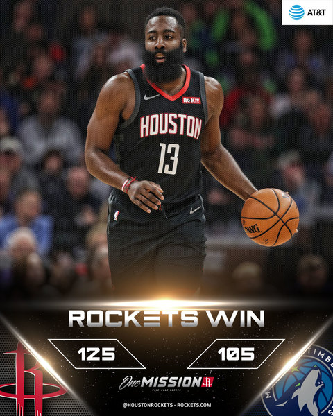 但經過與熱火的慘烈之戰後,火箭似乎就回神,靠著哈登場場飆分的超人演出,他個人不僅拿下當週西區最佳球員,更率領球隊拿下3連勝,而上週的哈登更推高自己極限,在隊友給予支援有限的情況,4戰場均能拿下44.8分,整體命中率高達45.8%,三分球命中率則是4成,5.8籃板、6.8助攻,甚至還有2.3抄截,全能身手說明哈登能攻也能守,無所不能的演出幾乎再度鎖定當週西區最佳球員獎。