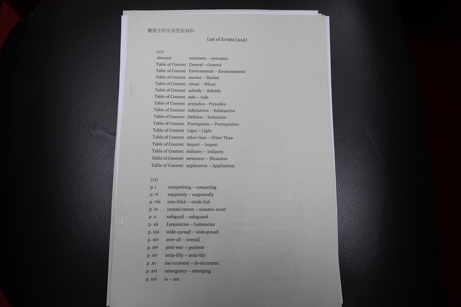 3,目前存放於台灣國圖的論文,已經蔡英文本人證實為其LSE的博士論文。政治大學政大國關中心研究員嚴震生仔細閱讀後,發現有超過400個以上的錯字及誤謬,格式錯誤部份尚未計算在內。很難想像一本博士論文竟會出現這麼多錯誤,不禁令人懷疑,這本「論文」究竟真的是當年蔡英文憑以取得學位的博士論文定本,還是只是初稿?
