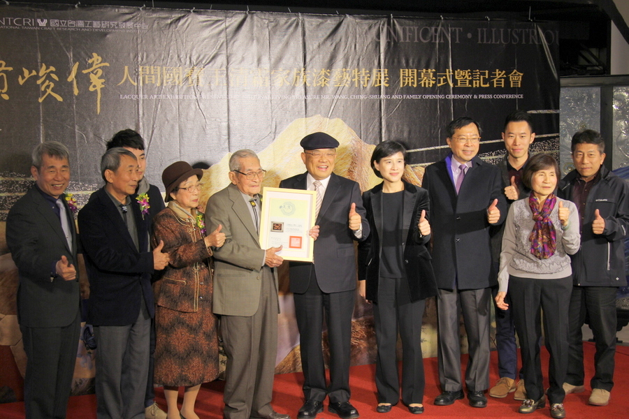 【台灣醒報記者祝潤霖台北報導】漆器工藝家族三代薪傳!「霜賢峻偉—人間國寶王清霜家族漆藝特展」10日揭幕,99歲的王清霜是台灣漆歷史發展見證人,除薪傳手藝至第3代外,行政院長蘇貞昌稱讚他在南投開設工藝之家,培育後進不遺餘力。
