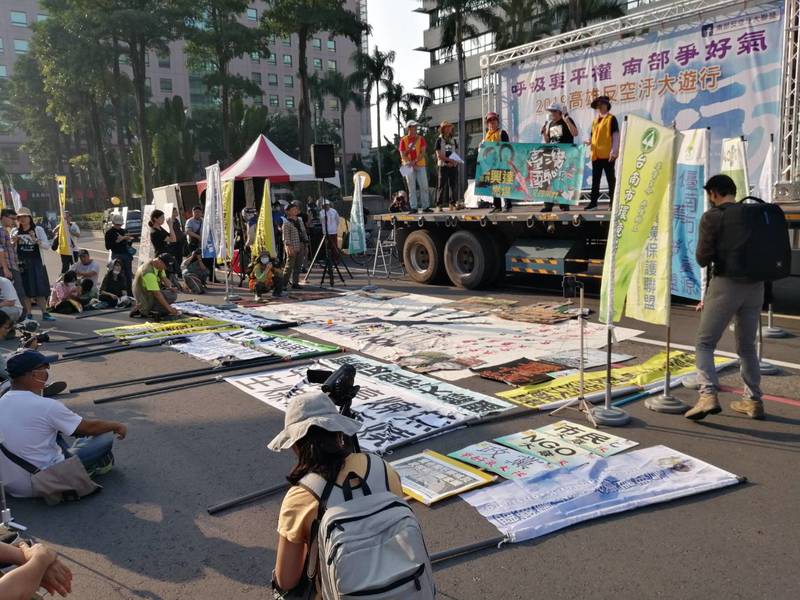 反空汙大遊行由多個環團共同舉辦,包含要健康婆婆爸爸媽媽團協會、台灣水資源保育聯盟、高雄健康空氣行動聯盟。環團表示,今年高雄反空汙大遊行的規模比往年小很多,彷彿沒有沾染選前的熱鬧氛圍,特別是藍綠兩黨今年幾乎沒有派人參與,可能是選前議題較多,分散民眾注意的緣故。