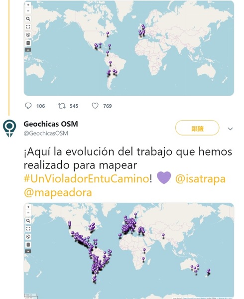 《半島電視台》報導,在有「地圖的維基百科」之稱的OpenStreetMap上,一群女性主義者自發的標出全球爆發反性侵示威的城市,只見中南美洲和歐洲一片密密麻麻的標籤,但在亞洲、非洲、大洋洲則很稀疏,顯示這股風潮尚未吹到亞非。這項舉動因此也受到了女性的協作平台社群Geochicas的聲援。