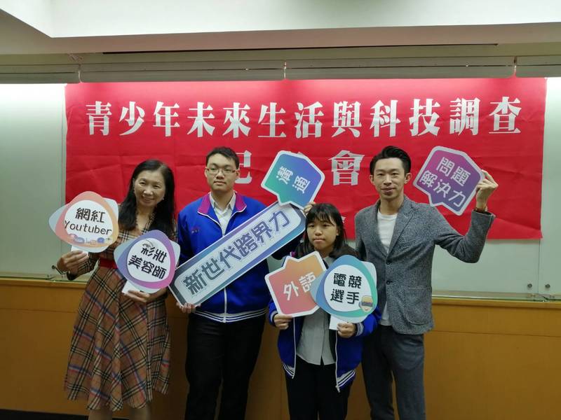 【台灣醒報記者林祐任台北報導】青少年最想成為職業電競選手,未來最期待「隱形斗篷」的問世!金車文教基金會對11至18歲的青少年進行問卷調查,發現有別於傳統的三師(醫師、律師、會計師),新興行業成為年輕人的首選。專家分析,新興行業其實是舊有科系的重新整合,譬如YouTuber需要商業企畫、表達、剪片、行銷等能力。
