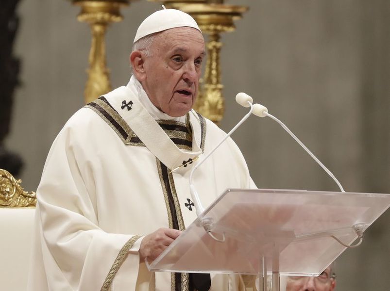 聖誕彌撒中,教宗、紅衣主教、祭壇人員、分別著白色、黑色、紫色聖袍,撒聖水、誦聖經、合唱團歌聲如深谷迴音,繚繞廊柱,最後教宗抱著一個木製嬰兒(象徵基督)走向信徒搭建的馬槽,象徵2020年前,基督降生拯救世人,聖潔光輝。