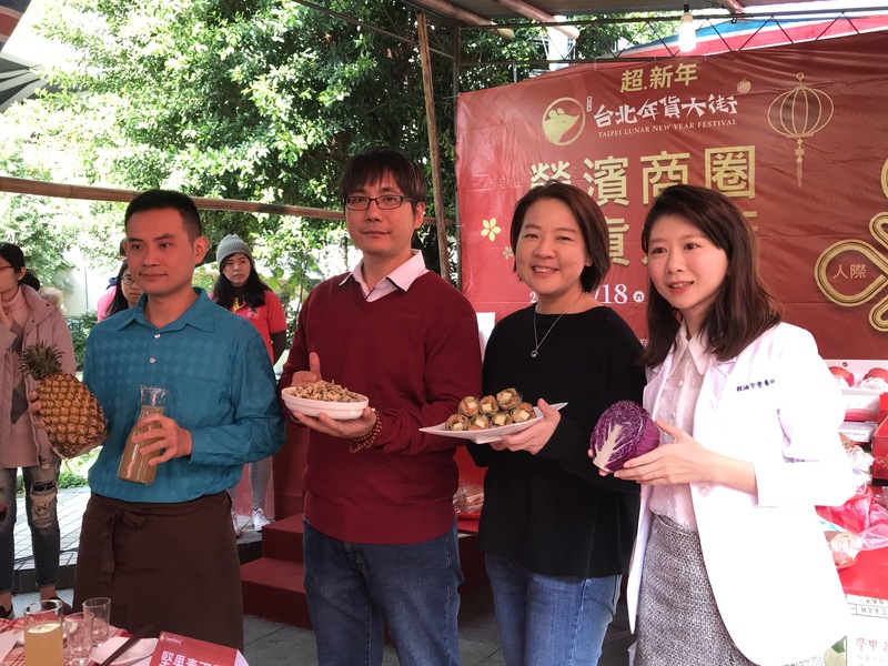 【台灣醒報記者簡碧卿台北報導】台北市榮濱商店街21日熱鬧展開年貨大街活動,台北市副市長黃珊珊親自到達現場與民眾拜年,發送開運發財金,現場還請來營養師程涵宇與大家一同分享年節健康吃的秘訣,吸引大批民眾前來聽講。