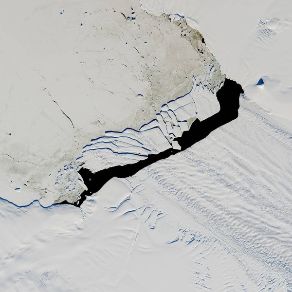 不單是南極地區的氣溫接連屢破紀錄,南極大陸的冰川消融也因暖化而日益明顯。就在2月9日,歐洲太空總署的哨兵2號衛星清楚觀測到南極西大陸的派恩島冰川臨海的冰棚出現了重大的斷裂現象,一個大約310平方公里(相當於台北盆地五分之四的面積)的巨大冰塊離開了冰川的主體,並且很快碎裂成幾個較小的冰山,其中最大的一個還被命名為B-49,以便衛星持續追蹤這個冰山漂浮的軌跡。