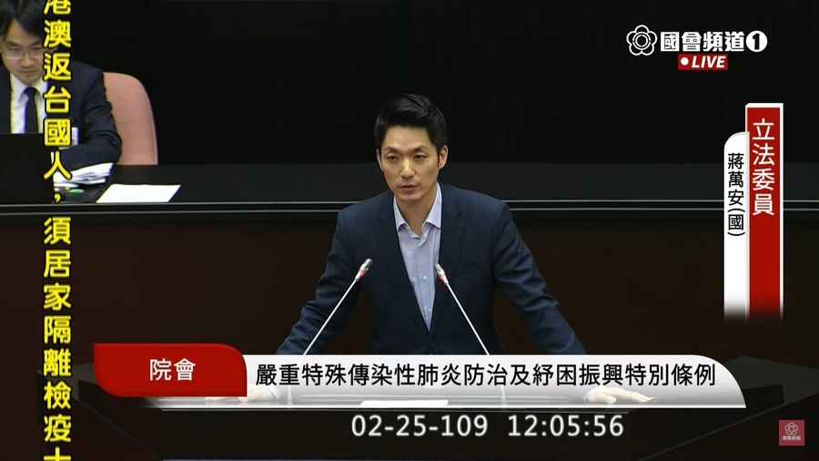 至於防疫隔離假以抵稅當作企業的誘因,國民黨團主張給予全薪。國民黨立委江啟臣指出,抵稅對很多中小企業毫無誘因,而且隔離某種程度上是政府對民眾的強制處分。國民黨立委陳玉珍認為,防疫隔離假若是給薪,也可降低民眾隱瞞疫情的風險。