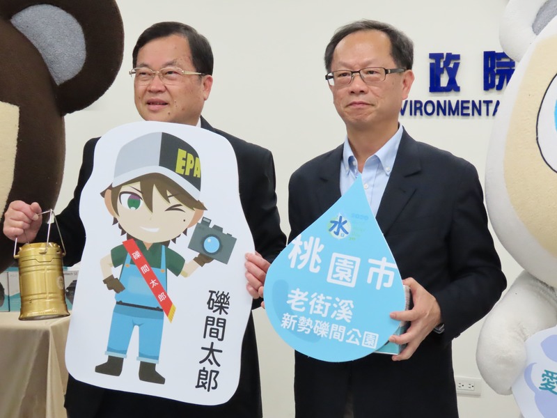 環保署17日舉辦「322世界水日愛水森活愛地球」記者會,水保處處長吳盛忠(左)讚桃園為「千塘之鄉」,右為桃園市環保局長呂理德。(photo by 施凱文/台灣醒報)