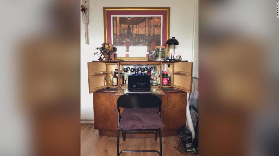 【台灣醒報記者施凱文綜合報導】防疫在家遠距工作沒空間?民眾打造「酒櫃辦公室」。居住在倫敦的諾斯科特最近把儲酒櫃的前擋打開,再拉出來一張椅子,馬上就打造一處舒適的「酒櫃辦公室」,也有民眾索性把燙衣板或長型洗衣籃搬到走廊角落,當桌子使用。