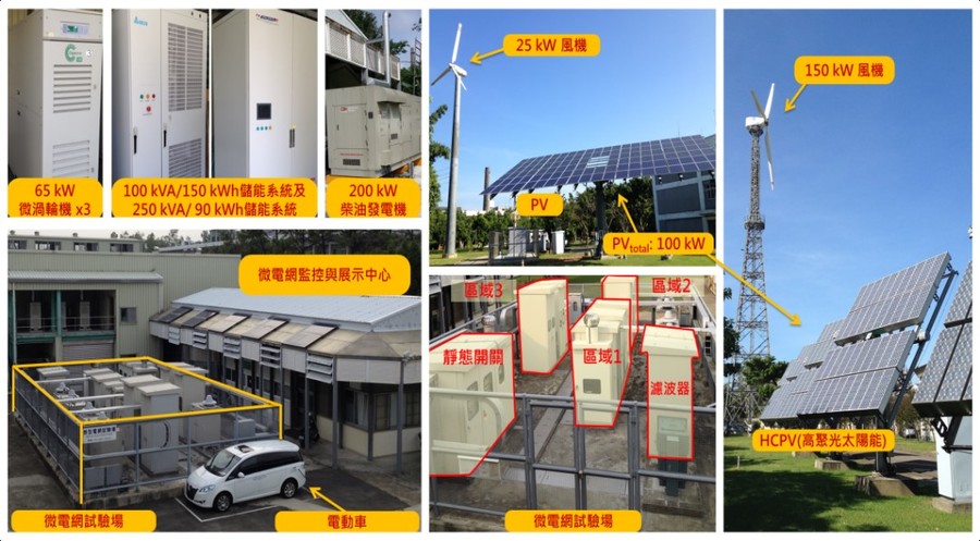 微電網系統是由各式小型分散式電源(如:柴油發電機、微渦輪機等)、再生能源(包含太陽能與風力發電等)、用戶與儲能系統等電力設備所組成,透過智慧能源管理系統調整設備的輸出功率來達到電力供需平衡,進而提高供電品質與降低尖峰用電,維持區域電網的穩定運轉。