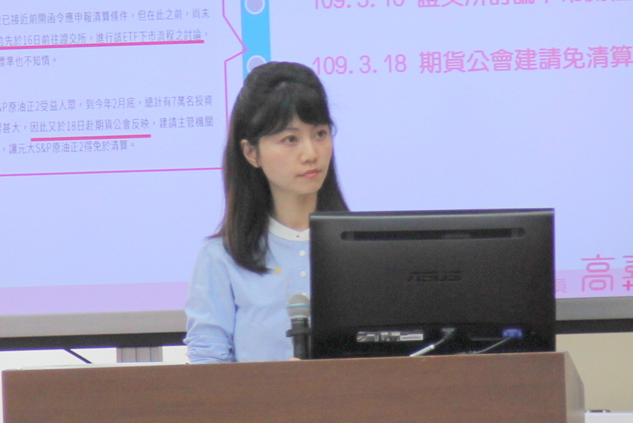 【台灣醒報記者祝潤霖台北報導】針對疫情造成國際油價下挫,國內連結商品ETF元大S&P原油正2(00672L)大跌,對此,民進黨立委高嘉瑜26日質疑,金管會上週一火速放寬下市門檻,因部分投資人已拋售,元大沖銷竟賺取1億多,引發爭議,對此,金管會主委顧立雄澄清,絕無跟元大證券有任何內線接觸。