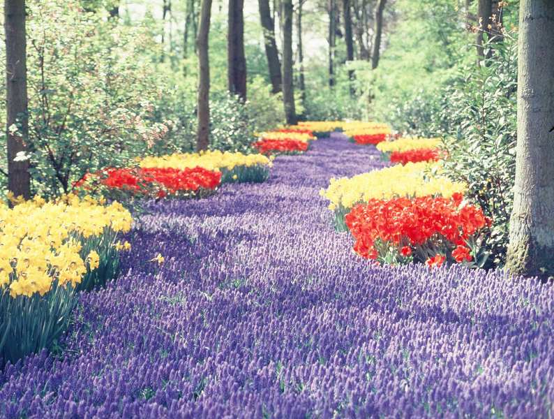 以花朵為主題的花園。例如荷蘭阿姆斯特丹的庫肯霍夫花園,就是鬱金香的主題花園,每年的遊客多如過江之鯽,每隔幾年,又會多出許多鬱金香的新品種,也可以欣賞到其他的花卉。