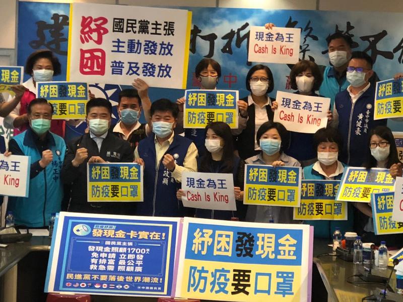 【台灣醒報特派員劉東皋台中報導】「執政黨中央不要再玩文字遊戲!」面對國民黨全力推動「發現金,要口罩」的訴求,總統蔡英文與行政院長蘇貞昌都發文指稱,中央政府所提紓困方案已準備給基層勞工發現金,後續為振興經濟,仍會發行酷碰券,但國民黨團16日召開記者會時,認為根本是在玩文字遊戲,許多民眾已經面臨無米之炊,為何不能紓困與振興一次做好?