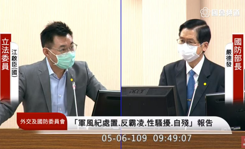 江啟臣問,行政調查怎樣會啟動?還是外界特別重視才拉高層級?嚴德發回應,行政調查就是聯兵旅級副主官以上負責調查,當然8項精進措施還是不夠,要針對工作負荷、本職學能強化檢討。江啟臣強調,如果連基層士官兵都沒管好,都先自傷自殘了,「對士氣打擊多少?要怎麼打仗?」