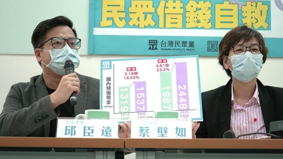 民眾黨團也蒐集1至3月的信用卡預借現金資料,發現2月預借人數比去年同期增加16.53%,3月更是暴增23.20%。立委邱臣遠指出,能夠申請信用卡都是有穩定收入的人,但信用卡預借代表「手頭上已幾乎沒有現金」,被迫使用這最後的管道,忍受高利率,呼籲政府應重視,否則6個月後恐出現停卡潮。