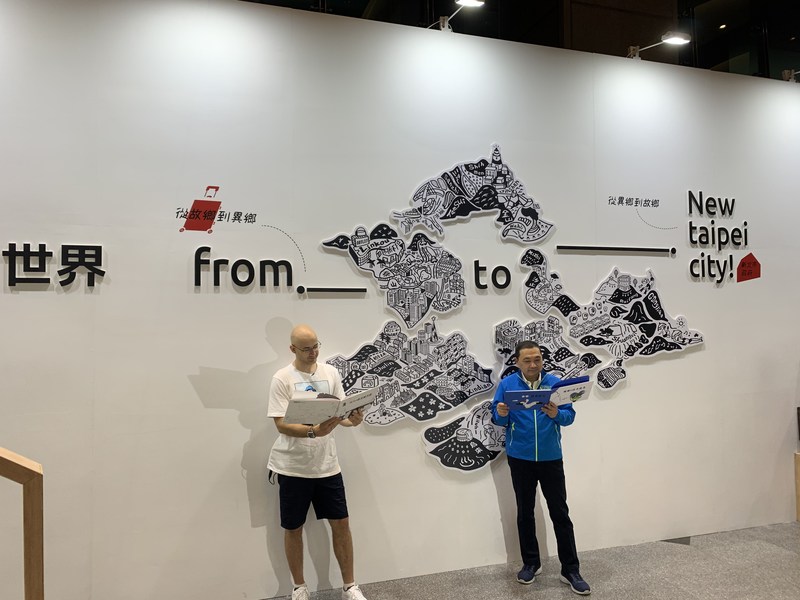 新北閱讀節特展位於新北市政府大廳,最讓人為之一亮便是貼在地上一個又一個「撩話」,總共29個俏皮的情話代表新北市29區,詼諧的短句之間也隱含疫情間「身離心不離」的溫暖訊息,如坪林區的代表話為「我和你的交流道,沒有匝道」,石碇區為「喜歡在湖光山色裡,想你」,汐止區則為「總是黏著這裡的雨,也黏住了我和你」,現場還有景點猜謎九宮格,為展覽增添互動樂趣。