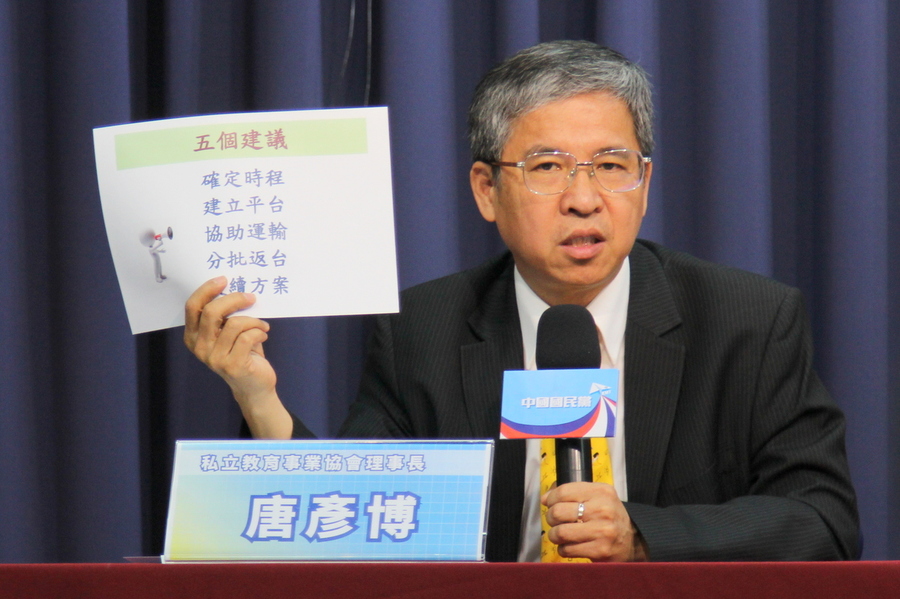 「分批返台,以應屆畢業生、學位生優先,訂定疫情輕微的國家開放順序,或隔離檢疫措施已完善的學校優先開放。」唐彥博建議,應以類包機方式協助輸運返台,便於學校直接安排進入隔離設施。後續方案包括專案復學、加開暑期課程、延長陸聯會招生時間等,未來盼非正規學制也能挹注,對私校雪中送炭。