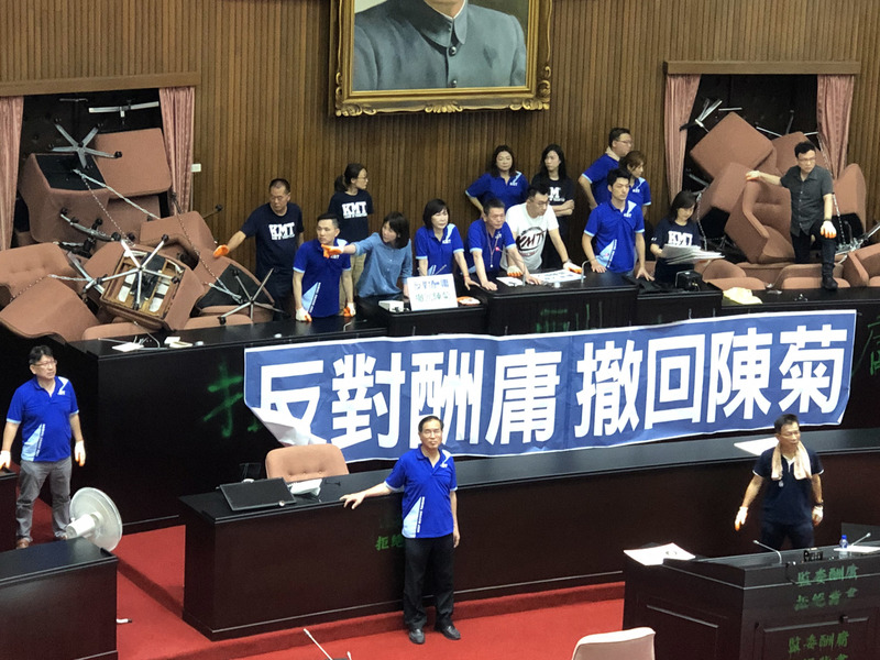 「蔡政府說國民黨把民主當人質,事實上民進黨才是把民主當成人質的慣犯!」文傳會主委王育敏表示,蔡總統自己就是把監委當成禁臠的始作俑者,國民黨是為民眾站出來,捍衛的是台灣的民主,捍衛的是人民賦予立委的權力,不能只投下反對票敷衍了事,國民黨願意承擔霸佔議場的政治責任及賠償責任。