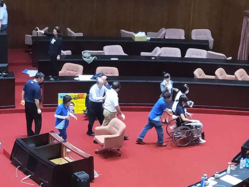 藍委賴士葆頭部撞到流血不止,不過身為醫生的綠委邱泰源現場幫他止血,多位女立委大喊暴力,賴士葆也向幾名女綠委潑水,雙方相互叫囂;綠委蘇巧慧被打、勒脖子,現場有女立委發出尖叫聲。藍委試圖從左側後門反抄,藍委許淑華與綠委林楚茵打成一團。4點左右,立委多聚集在左側後門,藍委謝衣鳳倒地,由醫護人員攙扶出議場。