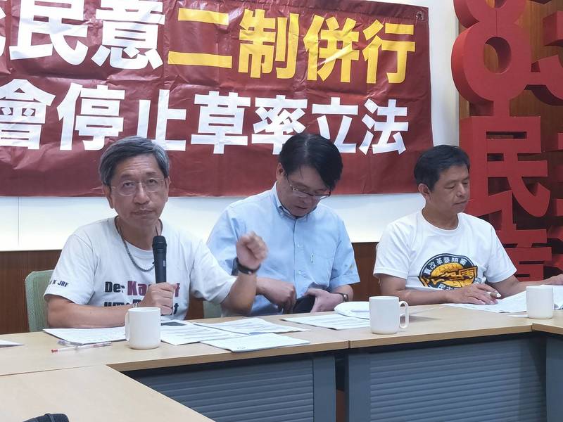 【台灣醒報記者呂翔禾台北報導】「司法院參審制根本沒有經過民間協商!」針對司法院20日上午召開民調記者會,公布超過7成民眾支持參審制。民間司改團體下午召開記者會回擊。司改會董事長林永頌痛批,司法院去年與民間協商兩試並行,結果今年便成參審制就算了,還用模糊不清、沒有說明清楚的民調騙民眾做民調,在170幾個團體、在野黨反對下,民進黨不該一意孤行。
