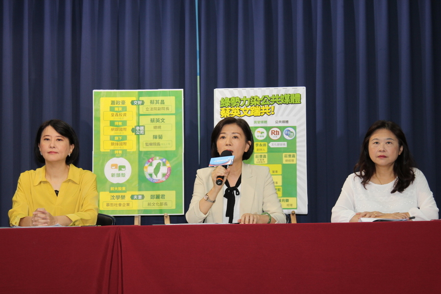 國民黨指出,綠營勢力假裝第三分公正機構,正大舉入侵公共媒體,並描繪出人物關係圖。(photo by 祝潤霖/台灣醒報)