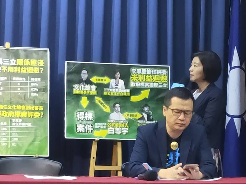 【台灣醒報記者呂翔禾台北報導】「政府標案評委找自己人,讓綠媒得標,完全將納稅人當白痴耍!」國民黨4日再度指控文化總會副秘書長李厚慶,不僅經常擔任政府標案評選委員,而且在妻子白舒樺擔任三立主管時也來擔任評委,讓三立標案大量過關,完全違反利益迴避原則,除了李厚慶,包括林育卉、丁允恭、林閣雍等人都遭國民黨指控身為黨工,卻介入政府標案。