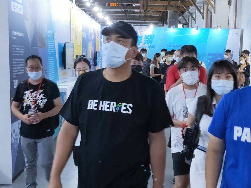 鋒哥(陳金鋒)一現身即引發球迷圍觀,沿途導覽員解說許多有關運動產業、台灣體育歷史的知識,但鋒哥大多都只是靜靜的看,沒有多說話。走到迷你棒球的體驗區時,鋒哥也久違的拿起兒童球棒玩了一下體驗遊戲,雖然擊球力道依舊兇猛,不過可能系統來不及判斷,3次打擊結果僅出現1支1壘安打。