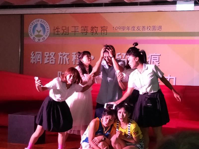 記者會一開始,紙風車劇團以小劇場的方式,演出常見的數位性暴力案例。例如被陌生人要求拍攝私密照片,以許多藉口哄騙女生拍裸照、網路交友見面時,以外洩照片威脅性交等情境,而劇中演員在發現自己的照片被上傳時,也演出多數人「不敢與爸媽、老師」說的心境。