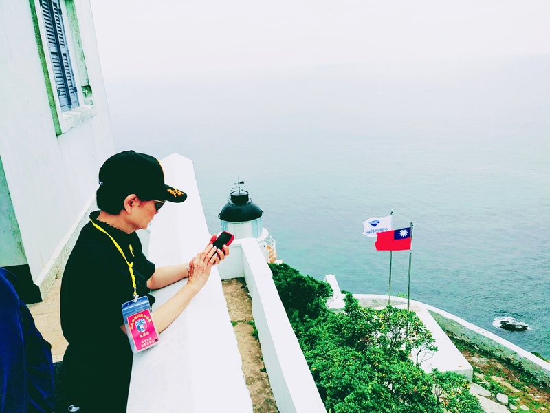 我們隨著蜿延山路上到燈塔下方,建於巍峨巨石上的觀景台,極目四望,近處沿岸,岩石峭壁,遠眺大海,汪洋波光,半個東引島層巒疊嶂,盡收眼底。此處得名為「太白天聲」,也許因為山區多霧,春夏之交、雨霧朦朧、潮聲交錯,向西望去有如太虛幻境,美不勝收。因而得此幻境之名。