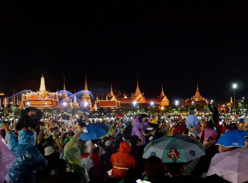 根據《英國廣播公司》報導,19日由學生領導的抗爭率先在國立政法大學舉辦,目前警方尚未獲得任何暴力形式抗爭的回報,抗議群眾隨後移往王室舉辦典禮常使用「王家田廣場」靜坐,即使下雨他們還是撐著傘、表達訴求,化名「麥克」的抗議學生領袖說,他們無意廢除王室,但王室權力太大必須改革。