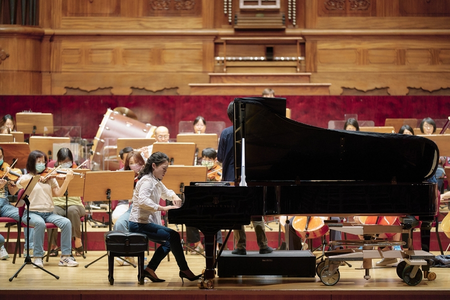 NSO國家交響樂團帶來《琴戀‧彼得洛希卡》音樂會,胡瀞云(中)演繹燦爛浪漫的蕭邦第1號鋼琴協奏曲。(photo by NSO國家交響樂團)