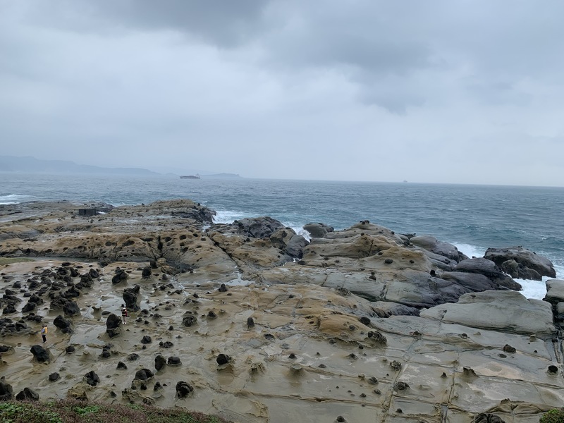 和平島的海風很大,我們收起雨傘,穿上雨衣,繫緊雨帽,海風一陣緊似一陣,雨絲撲面而來,我們卻詩心滿滿,捨不得錯過任何海洋公園目所能及的美景。跟隨著導覽葉老師,耳機裏是他清楚的解説,眼前是驚濤拍岸,捲起千堆雪,一波更一波的雄偉海景。