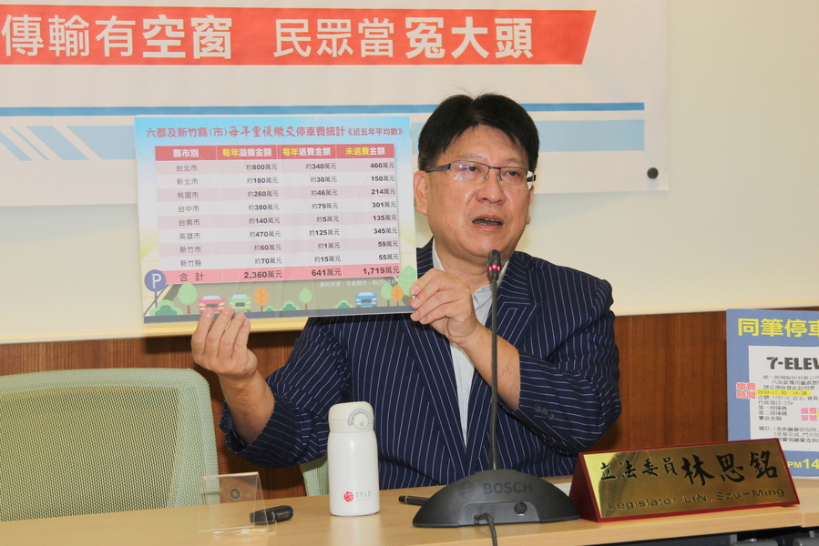 「民眾認為20元是小事,但從現代資通訊科技看來,資料的即時傳輸、勾稽,或綁定止付理應不是難事。」林思銘說,進一步了解6都與鄰近縣市辦理情形,驚覺6都加上新竹縣、市,停車費重複超收的金額5年累計高達1.18億,1年溢收2,360萬,以每筆停車費40元計算,相當於每年有高達58萬筆重覆繳交的停車費。