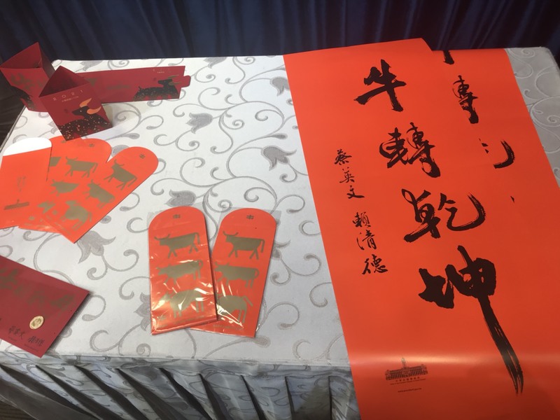 至於福袋的發放時間,谷辣斯表示,以往是在總統、副總統下鄉拜年時發放,但今年因應疫情,發放的時間及形式要在1月中旬以後才會公布。她提到,今年印製的春聯有25萬份,紅包有18萬5000包,福袋則有33萬份。