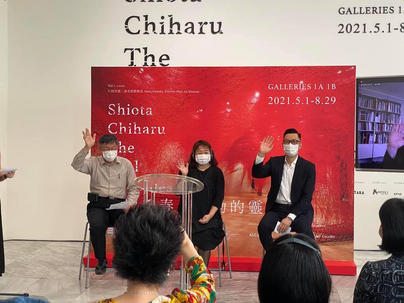 柯文哲於今(30)日下午2時,親自出席塩田千春「顫動的靈魂」在北美館舉辦的開幕典禮,他並花了很長時間,在北美館長王俊傑依次導覧,藝術家塩田千春與台北市副市長蔡炳坤、文化局長蔡宗雄⋯等陪伴下,詳細品覽每一作品。他心情愉悅,頻頻發問,也不斷微笑點頭,最後讚不絕口,直說是很值得品覽的優質國際大展。