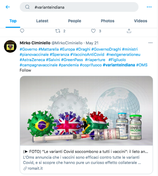該警告信是利用推特的疫情指令(推特此前宣佈過,為了遏止疫情期間的恐慌,有權刪除假資訊與錯誤訊息),稱推文與內容不只亂連結印度變種,多數相關的資訊都還是假新聞,要求推特照做,凸顯出印度政府對名聲與指責相當敏感,當局處於疫苗、氧氣、病床、藥物短缺,且公衛體系瀕臨崩潰的艱困情況下,不能接受更增長的民怨,特別是推特的印度用戶是全球第3多的族群,消息傳遞會更快更廣。