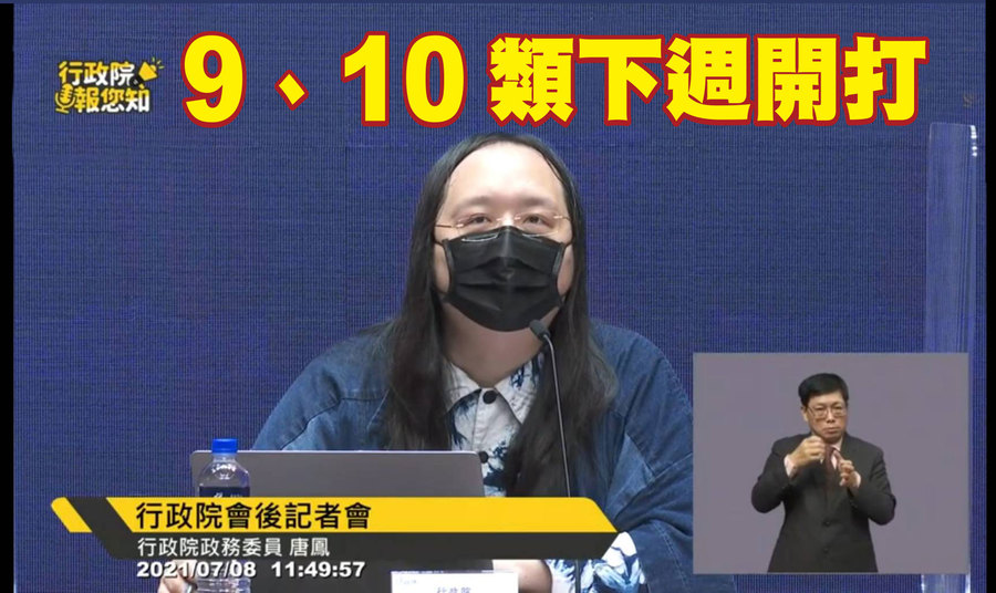 【台灣醒報記者呂翔禾台北報導】前2天登記疫苗施打意願的民眾,之後不用再重新登記了!行政院政務委員唐鳳8日宣布,疫苗施打預約正式開放,下周將會有第一批符合資格(第9、10類)的民眾施打。另外,外界關注三級警戒是否會延長至26日,與夏季電價是否暫緩,行政院都未給答案。