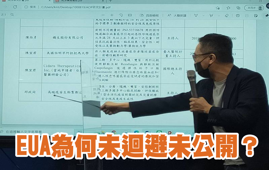 國民黨文傳會主委王育敏指出,與美國EUA相比,台灣的EUA審查辦法比較晚推出,正式藥證的審核標準也尚未制定。美國的EUA審查全程都可以在YouTube上直播觀看,且所有人的發言紀錄與誰發言都可以查,但台灣的EUA,卻還要媒體施壓下,才進行去識別化的公開,但其中內容短缺,公佈與不公佈根本沒差。