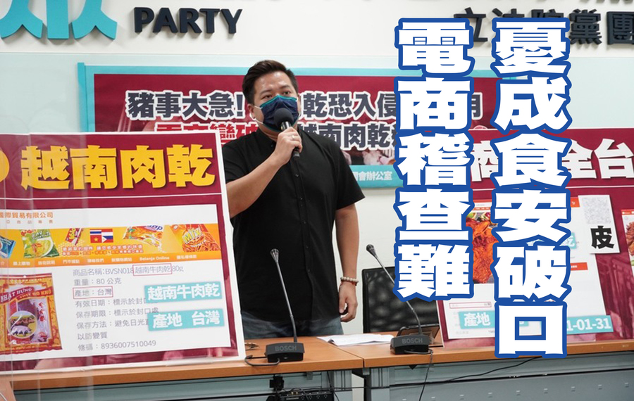 電商平台的外國肉品部分,邱臣遠解釋,蝦皮等網路電商平台可輕易找到「越南肉乾」等商品,而最大的食安破口就在於這些商品的產地、製程、進口過程「查不出來」,有時相同商品甚至會出現台灣、越南不同產地的狀況,其中又以標示為台灣為主,恐存在標示不實的嫌疑。