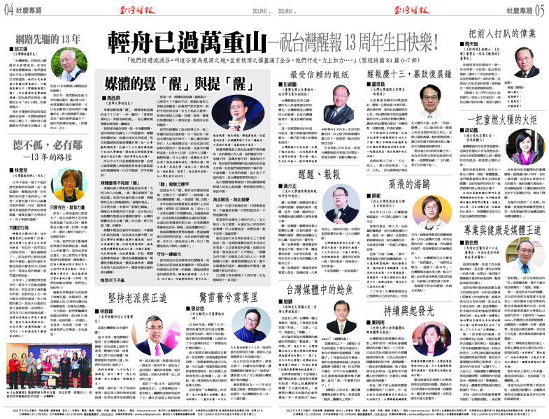 恭喜台灣醒報13的週年慶!