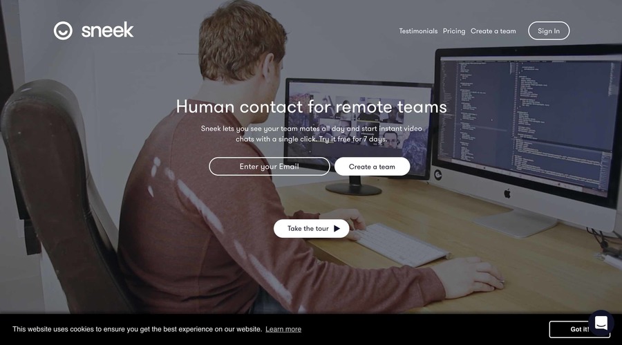 Sneek 官網解釋,軟體會持續直播員工的工作狀態,並顯示在「數位會議顯示面板」上,團隊中的成員都可以透過顯示面板看到其他人的動態,且只要點擊成員的相片,就能將對方拉入視訊會議。Sneek 創辦人庫里曾提到,該軟體希望能夠複製辦公室環境。但他也坦言,很多人認為這樣的監控讓人覺得隱私權遭到侵犯。