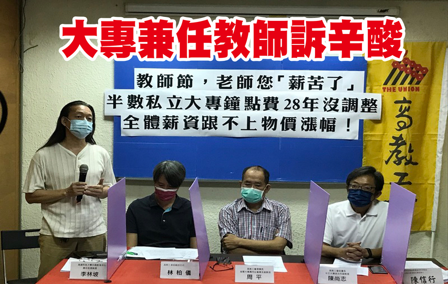 【台灣醒報簡嘉佑台北報導】大專兼任教師面對不到三萬月薪、常莫名被解雇與受到學校歧視的困境,28日引發高教工會出面爭取福利。高雄科技大學外語教育中心的兼任助理教授李林坡指出教育部放任兼任教師困境愈發困難,不僅沒有調整薪水,也沒有將兼任教師納入勞基法的保障。他們要抗爭到底。