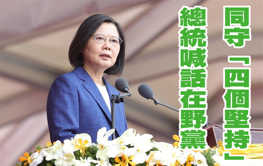 蔡英文此次國慶談話拋出「自由民主的憲政體制」、「中華民國與中華人民共和國互不隸屬」、「主權不容侵犯併吞」、「中華民國台灣的前途」等四個堅持,強調這是台灣人民給我們的底線也是最大公約數,要據此凝聚團結共識。她說,「當我們越好,中國給我們的壓力就越大」,她要提醒所有國人同胞,台灣沒有鬆懈的本錢。