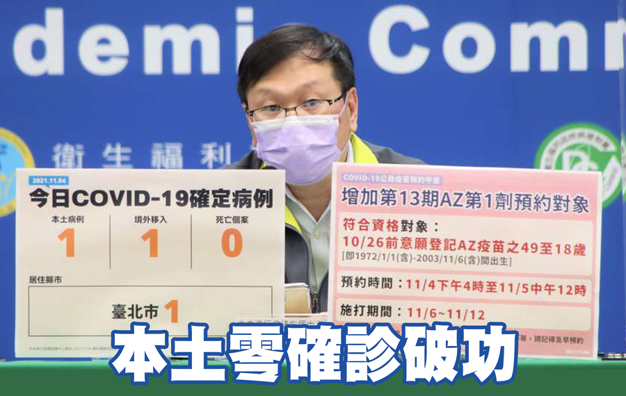 指揮中心於4日公布,國內新增1例本土個案,本土零確診破功。(指揮中心)