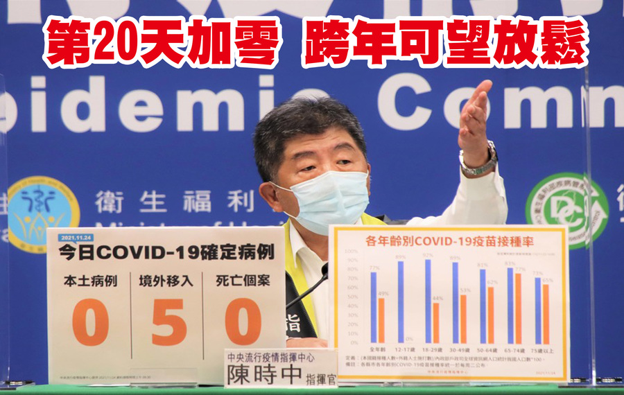 台灣本土疫情趨緩,連續20天本土加零,對於外界好奇是否放寬大型活動如跨年活動等。對此,陳時中回應表示,本土疫情仍維持穩定,目前還多一層疫苗的保護,等到跨年的時候,疫苗覆蓋率也會相對達到比較好的標準。所以跨年活動是否還需要做防疫上的調整,相關規定大概會更鬆。