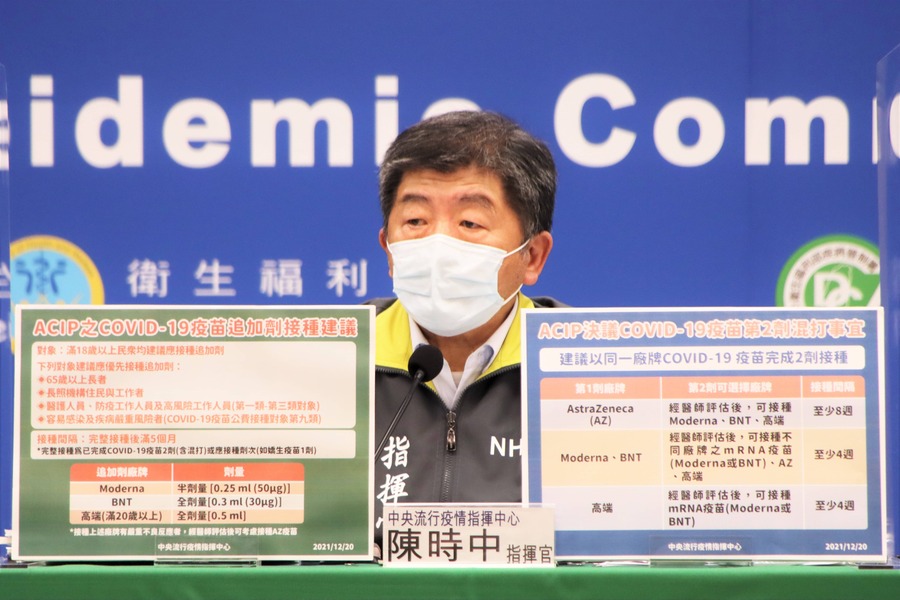 指揮中心於20日公布疫苗混打新規劃,除第一劑接種高端者,第二劑不能接種AZ外,疫苗第二劑開放全廠牌進行混打。但衛福部傳染病防治諮詢會預防接種組(ACIP)專家還是建議民眾以同一廠牌的疫苗完成2劑接種。同時,民眾只要接種疫苗滿五個月,第三劑可選擇半劑量的莫德納或全劑量的BNT、高端進行混打。
