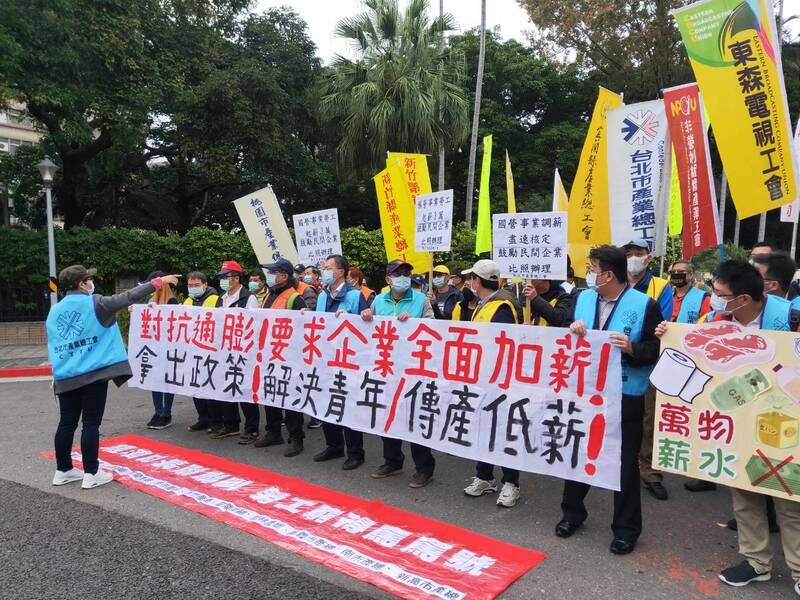 「國公營事業若不調薪,民間根本不會跟著調!」台北市產業總工會代表說,這兩年的加薪幅度完全低於物價漲幅,民生物資高漲、薪水卻都沒有漲,基本工資調到25200元也沒有用,「因為通膨把薪水成長都吃掉了。」他呼籲蔡政府儘速將國公營事業的起薪調至3萬。