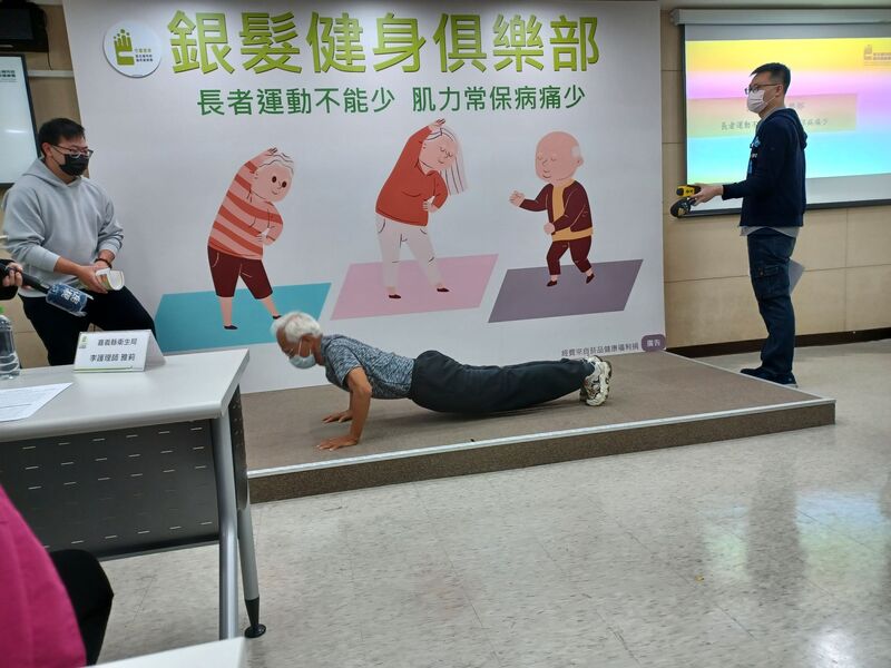 75歲的陳聯煌在記者會現場「脫稿演出」,熟練地向大家展示各樣運動成果,如伏地挺身、劈腿等,引起在場人員驚呼連連。賈淑麗指出,台灣老年人口比例已達16.9%,總人數超過394萬,且肌少症在台灣約有7%的盛行率,增加長輩跌倒、失能的風險,而運動中心的物理治療師們,除了能提供專業協助,也有促進長者們社交的效果。